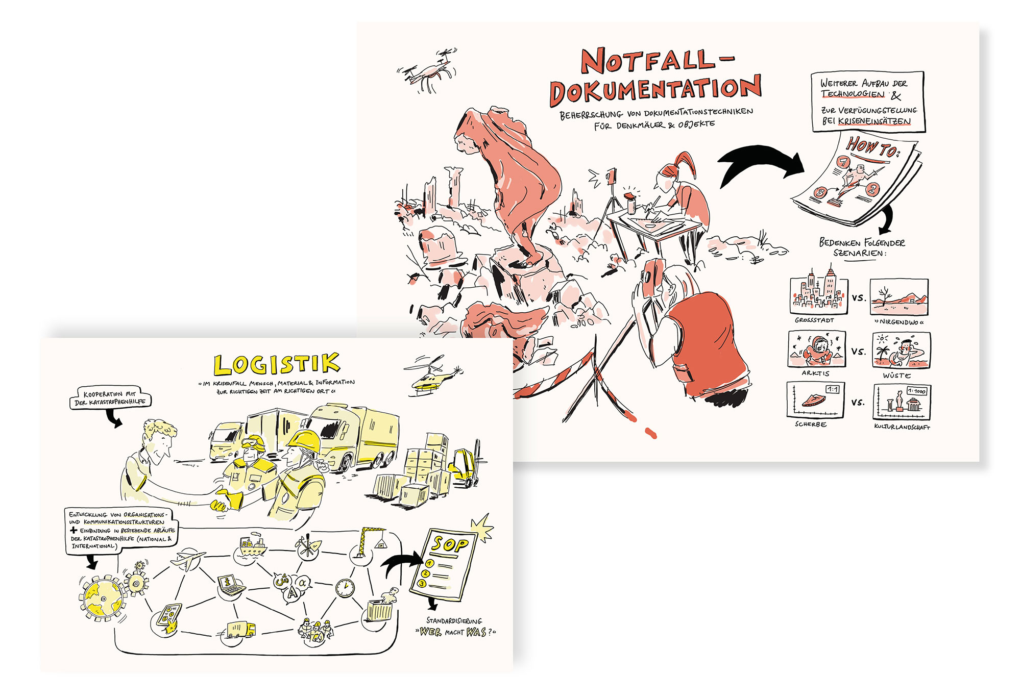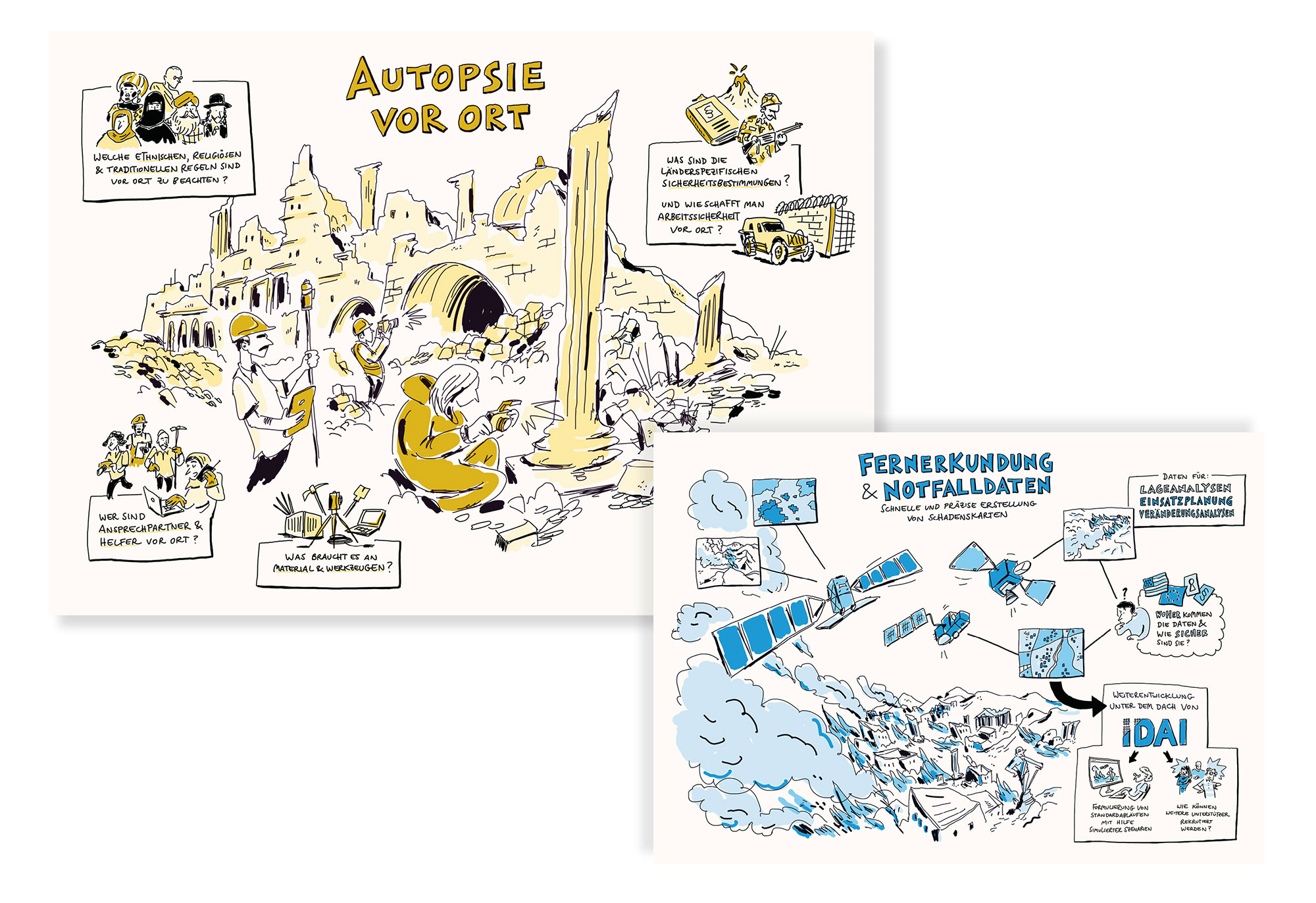 In many of my graphic recording assignments, I work for NGOs in the fields of development aid, civil protection, disaster relief and cultural heritage protection. Here are some selected visualisations of lectures and panel discussions.