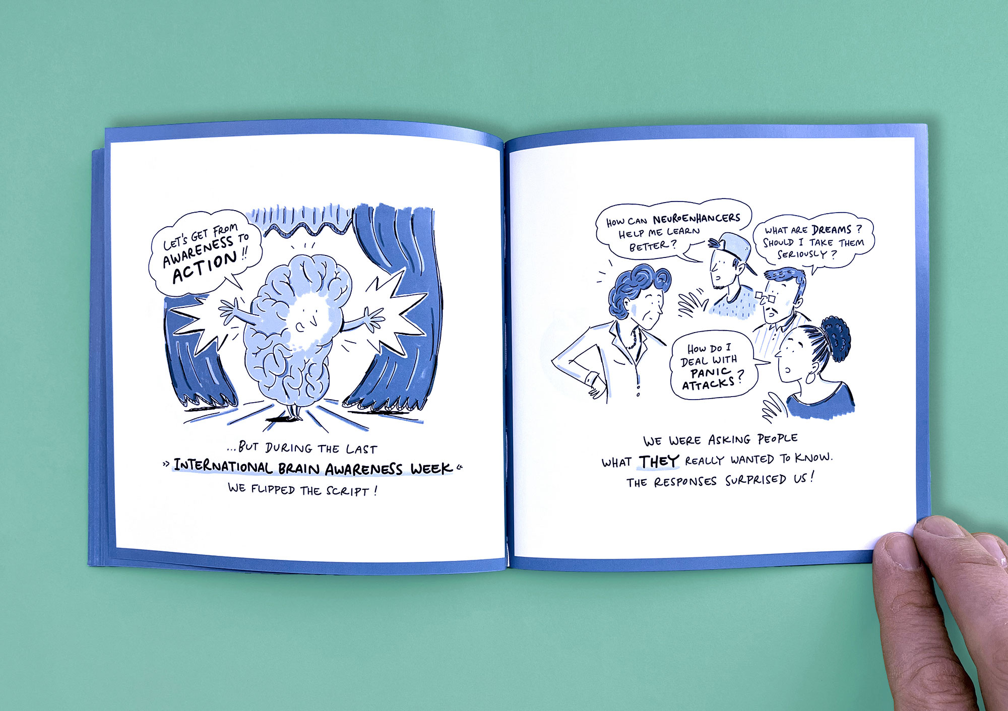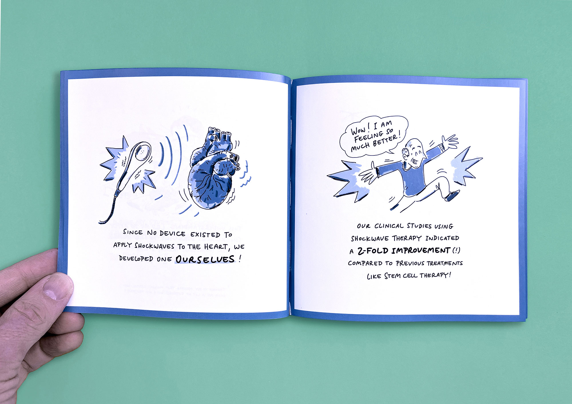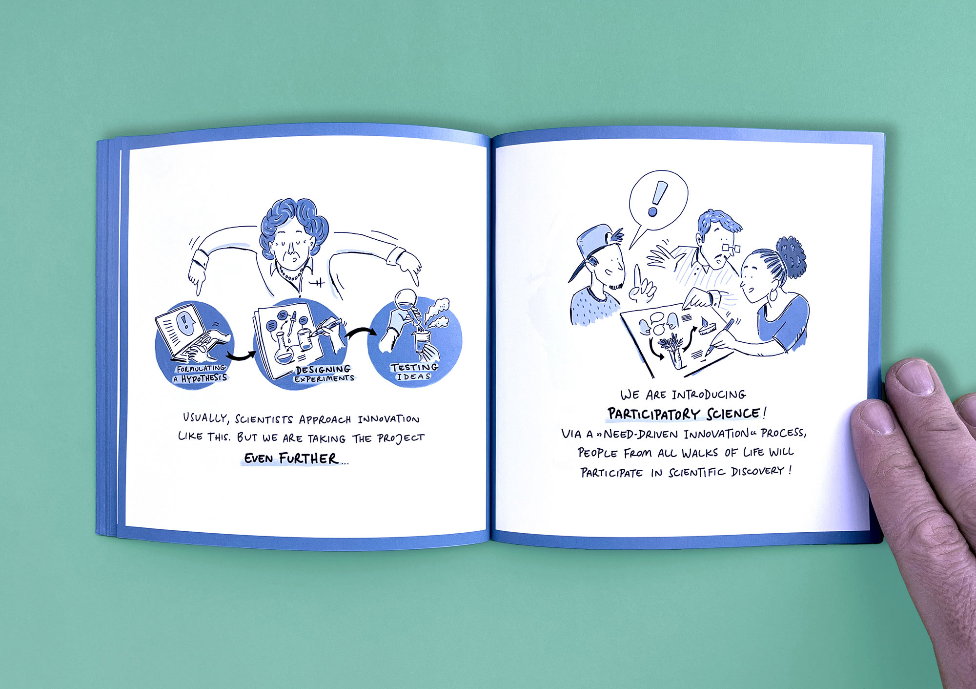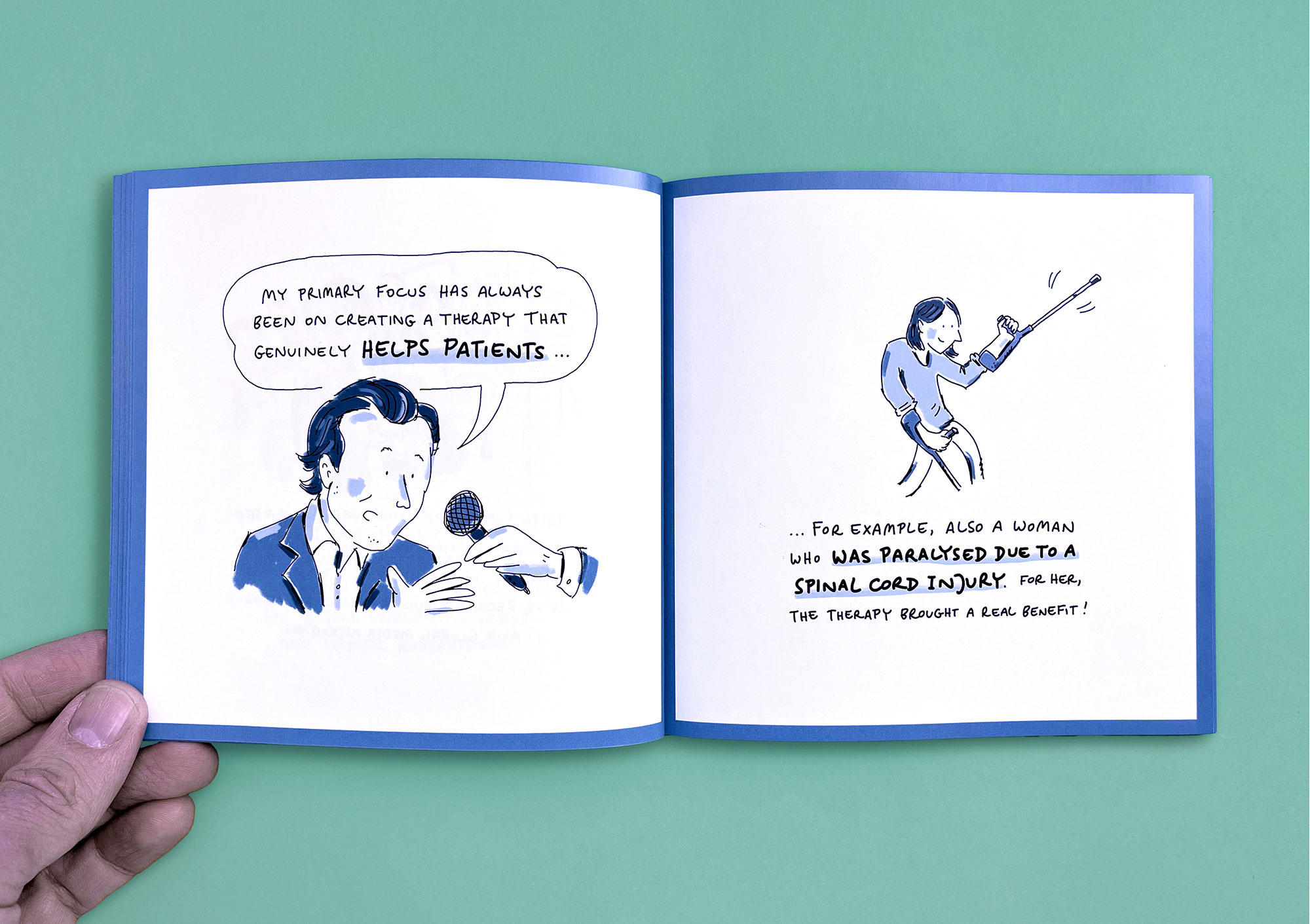 MedLifeLab is the medical innovation hub of the University of Innsbruck. Researchers here work on highly ambitious projects that have a major impact on research, life, and health. However, these projects are not always easy to communicate to the outside world. I have explained three exemplary MedLifeLab projects in entertaining, easy-to-understand comic stories. The result is a Pixi book that is given away to interested parties and potential partners — and which stands out from conventional medical publications in terms of both style and appearance.